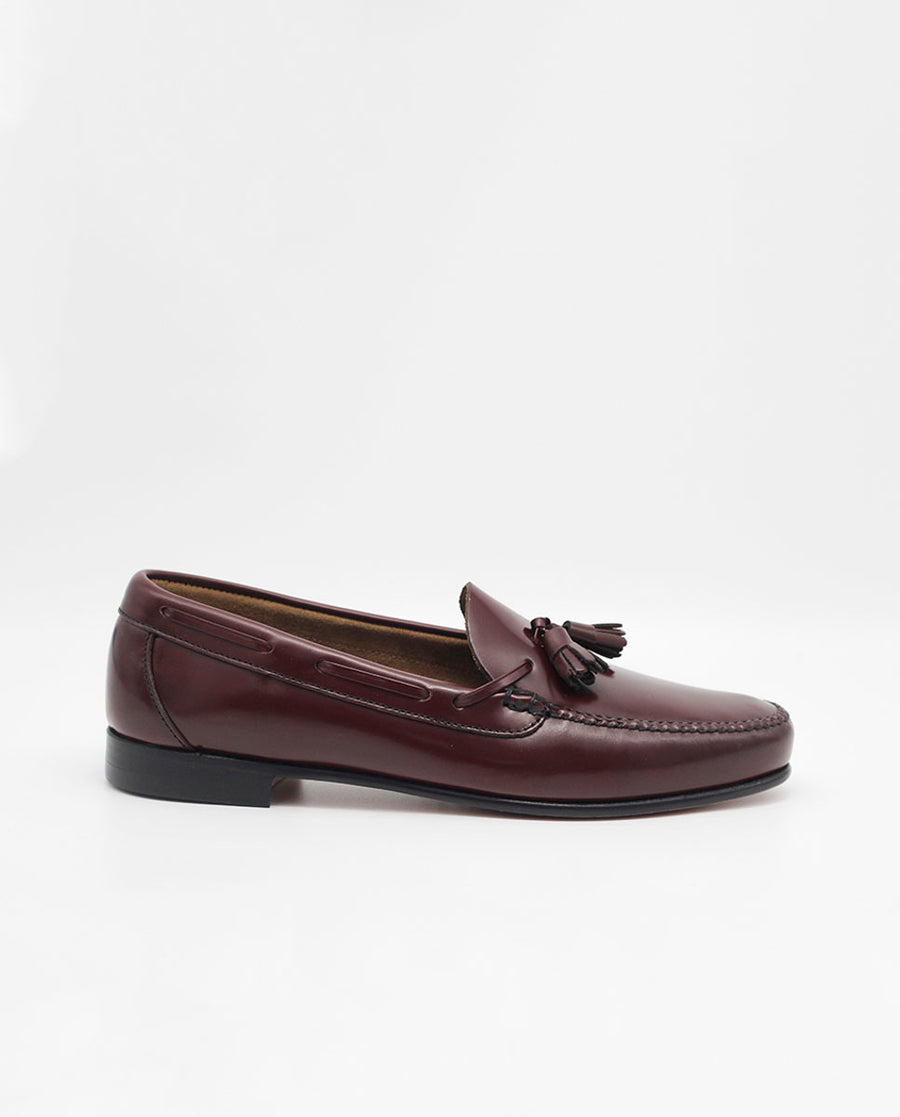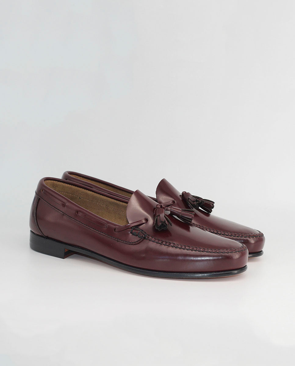 Mocasín de hombre de pala corta con borlas y pasacintas  producido con materiales 100% españoles por maestros artesanos españoles